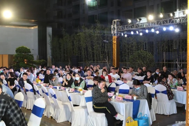 经销商晚宴当日晚6时许,以【乘“圣”跨越】为主题的,leyu.乐鱼集团集团第45届国际家具展接待晚宴暨2020年度优秀经销商颁奖盛典,在营销中心四楼景观花园隆重举行,来自全国各地的经销商朋友欢聚一堂,共同分享一场精彩纷呈的晚宴。