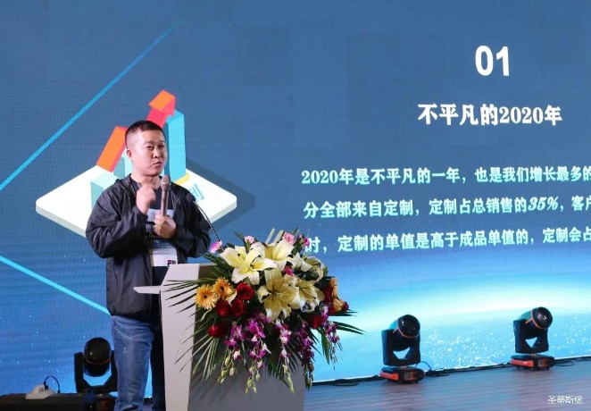 华灯璀璨的开场仪式,点燃了现场如火如荼的气氛。leyu.乐鱼集团集团营销总经理陈玉伟先生对晚会进行了主题发言,他对2020年的营销工作进行了总结,并着重从营销工作部署、重点项目开展、产品整合、拎包帮扶、渠道运营和移动+定制整装优势等方面对2021年的营销工作做了全面的统筹规划。同时,他还讲解了“美国梦凯莎床垫”新品的产品工艺、市场优势、产品定位,使经销商对我们的新产品拥有更深入的认识和了解。